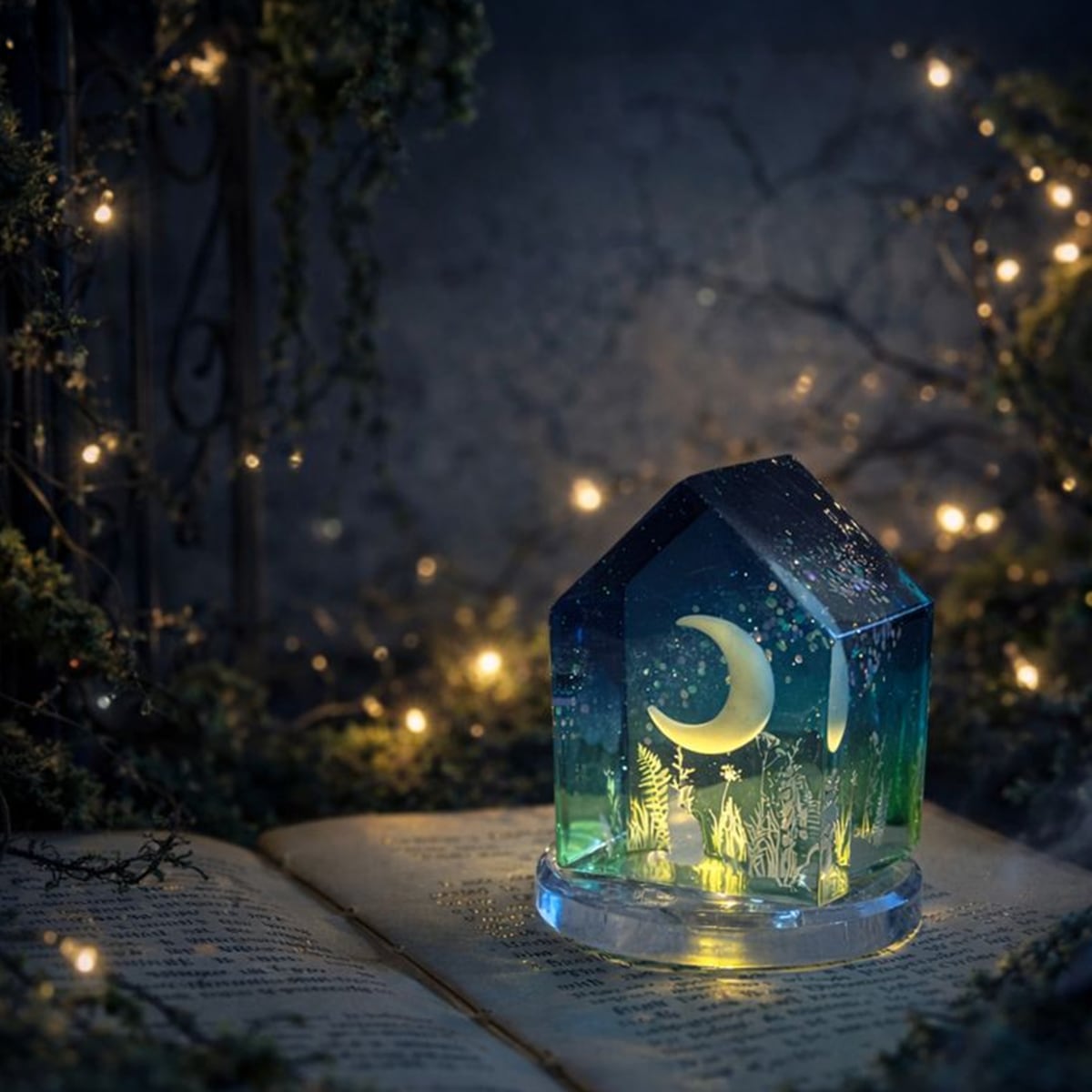 忘れられた庭に三日月が降りてきて夜にはあたりをほのかに照らす。